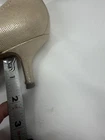 The Donald J Pliner Gold Kitten Heels in size 9 are a stylish and elegant pair of women's shoes. Made of leather with a kitten heel style, these pumps exude a metal theme with a touch of glamour. The gold color adds a touch of glamour to any outfit, making them a versatile and fashionable choice for women looking to elevate their look. Does have wear to them. Shown in pictures