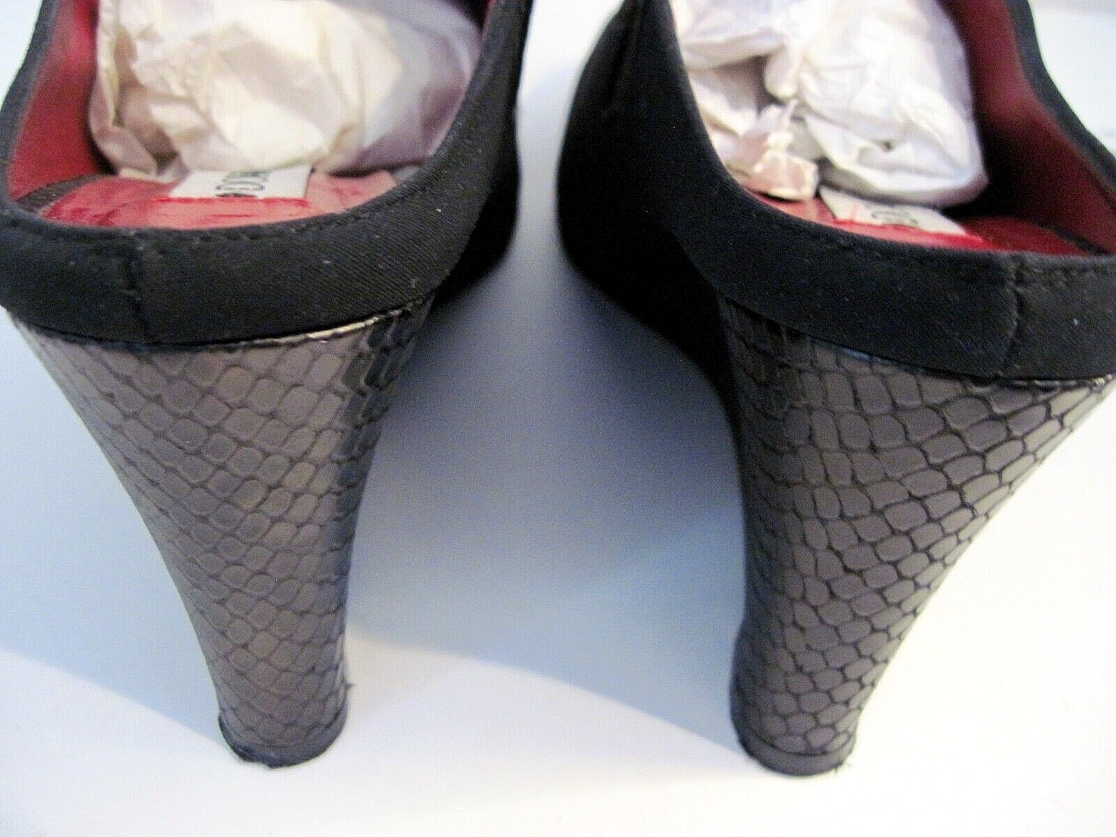 Donald J.Pliner Stretch Black Fabric Closed Toe Snake Wedge Bootie Heels Size 7 M. Snake Wedge Heel Measures 3 3/4". Hand Made In Spain. Gently Used. 3 F
