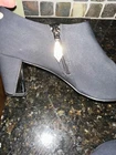 This listing is for a great Donald J. Pliner black stretch crepe booties with mirrored heels. Very good used condition--see close up photos for condition. Smoke free home. Shipping: Buyers to pay shipping cost per calculator below. Additional clothing items are $1 additional per item. Outside U.S. please contact for shipping rates. Make sure to add us to your favorites as new items are added daily.