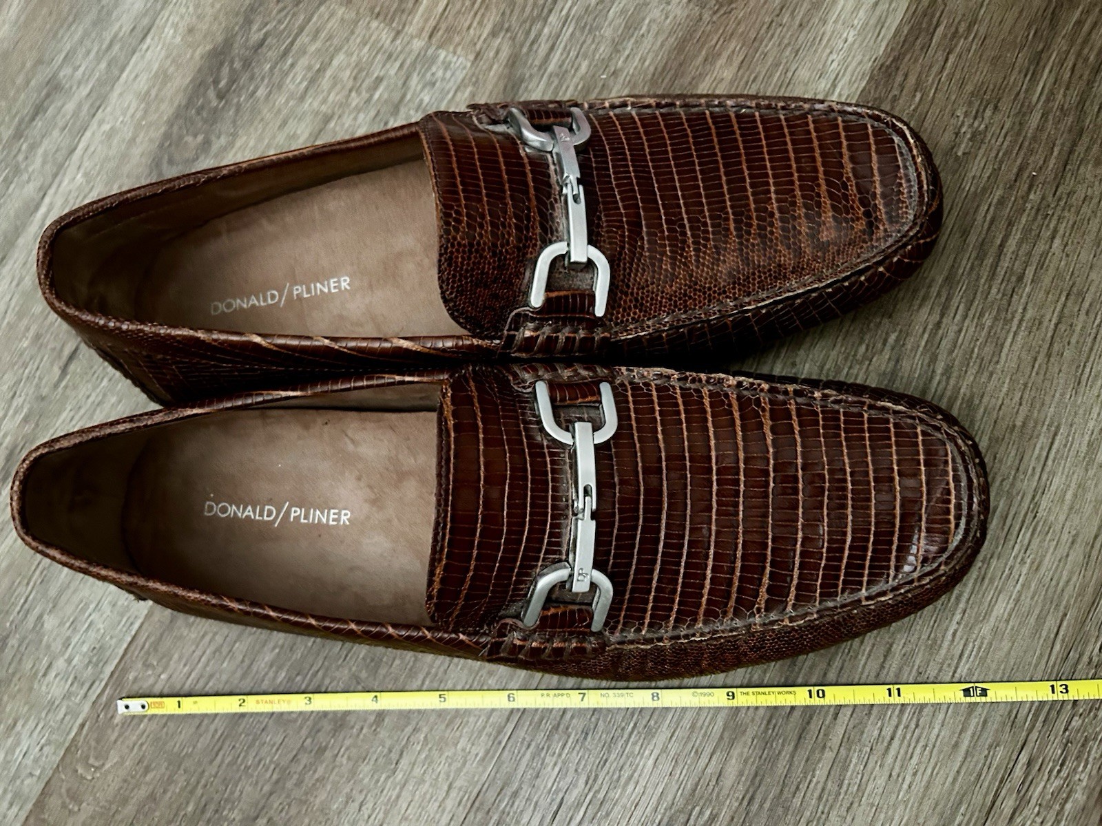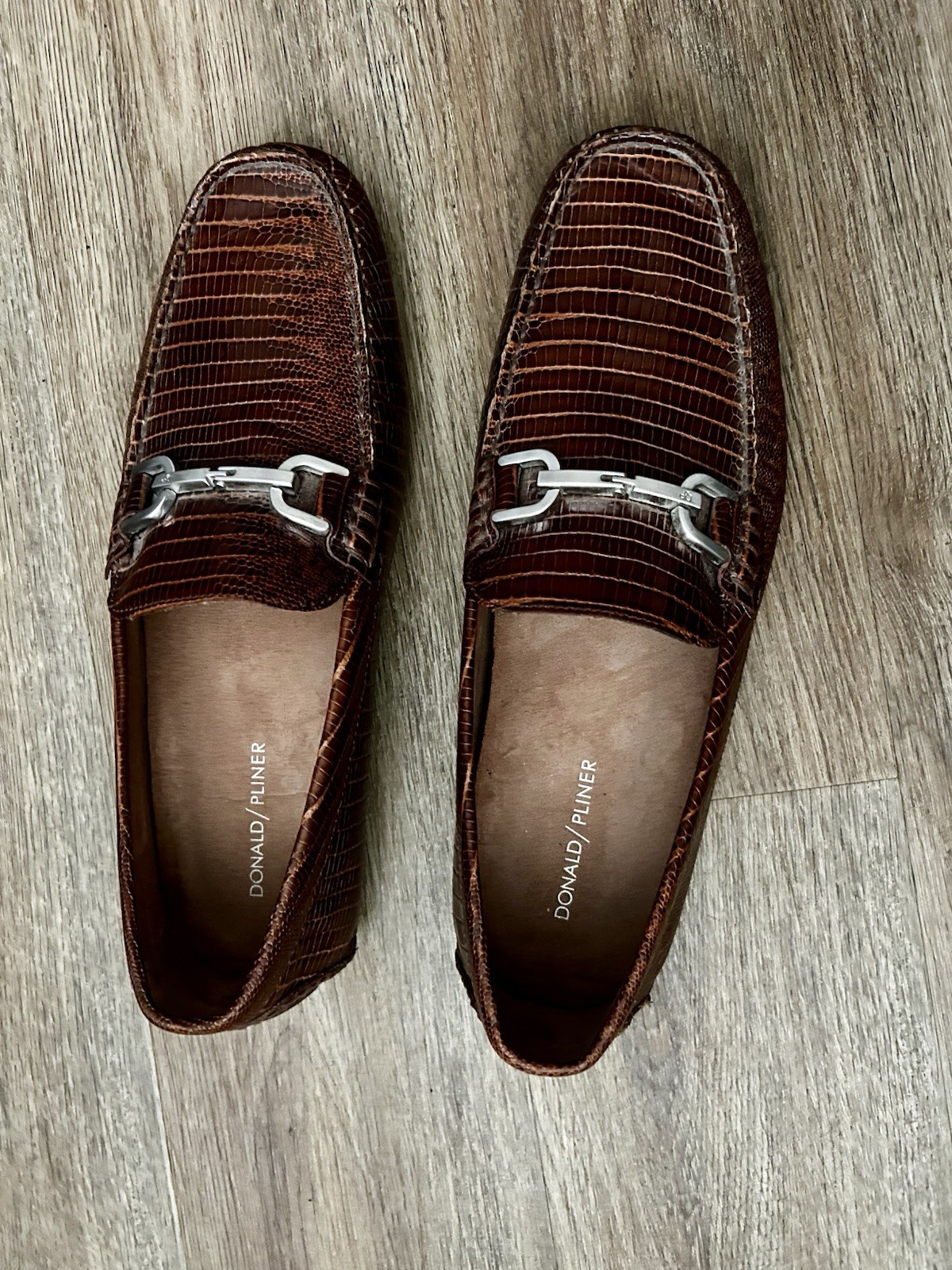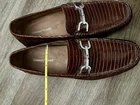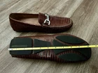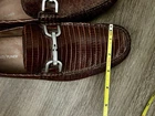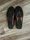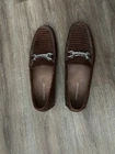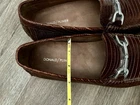 The product is a pair of Donald Pliner brown leather slip-on loafers. These casual shoes are designed for men and feature a solid brown color with leather lining and upper material. The loafers offer comfort and are suitable for occasions in the summer, fall, or spring seasons. The simple slip-on closure and classic loafer style make these shoes a versatile and stylish choice for men looking for comfortable and casual footwear options. Sizing: *cannot find sizing marked on shoes The shoes measure 10.5 inches from heel to toe (measured along the interior/insole). This typically fits close to a Men’s US 9–9.5 depending on foot shape and brand variation. Please compare the measurement to a pair of shoes that fit you well to ensure the best match.