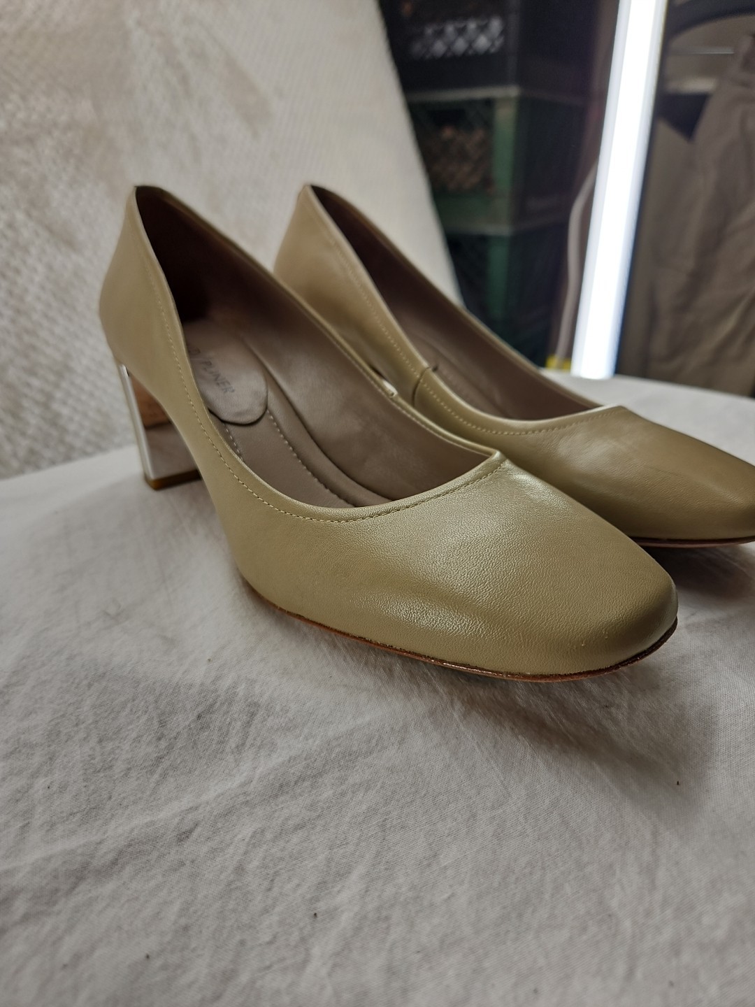 Elevate your style with these stunning Donald Pliner Coran 2 Model Mirrored Block Heels. The square toe and slip-on closure make them easy to wear, while the mid heel height provides a comfortable lift. The brown color and logo accents give them a touch of elegance, perfect for any business or formal occasion. Crafted with high-quality leather, these pumps are durable and stylish. The outsole material is also leather, making them perfect for any season. These shoes are a must-have for any fashion-forward woman who wants to look her best. Very gently used as seen in photos...B1106