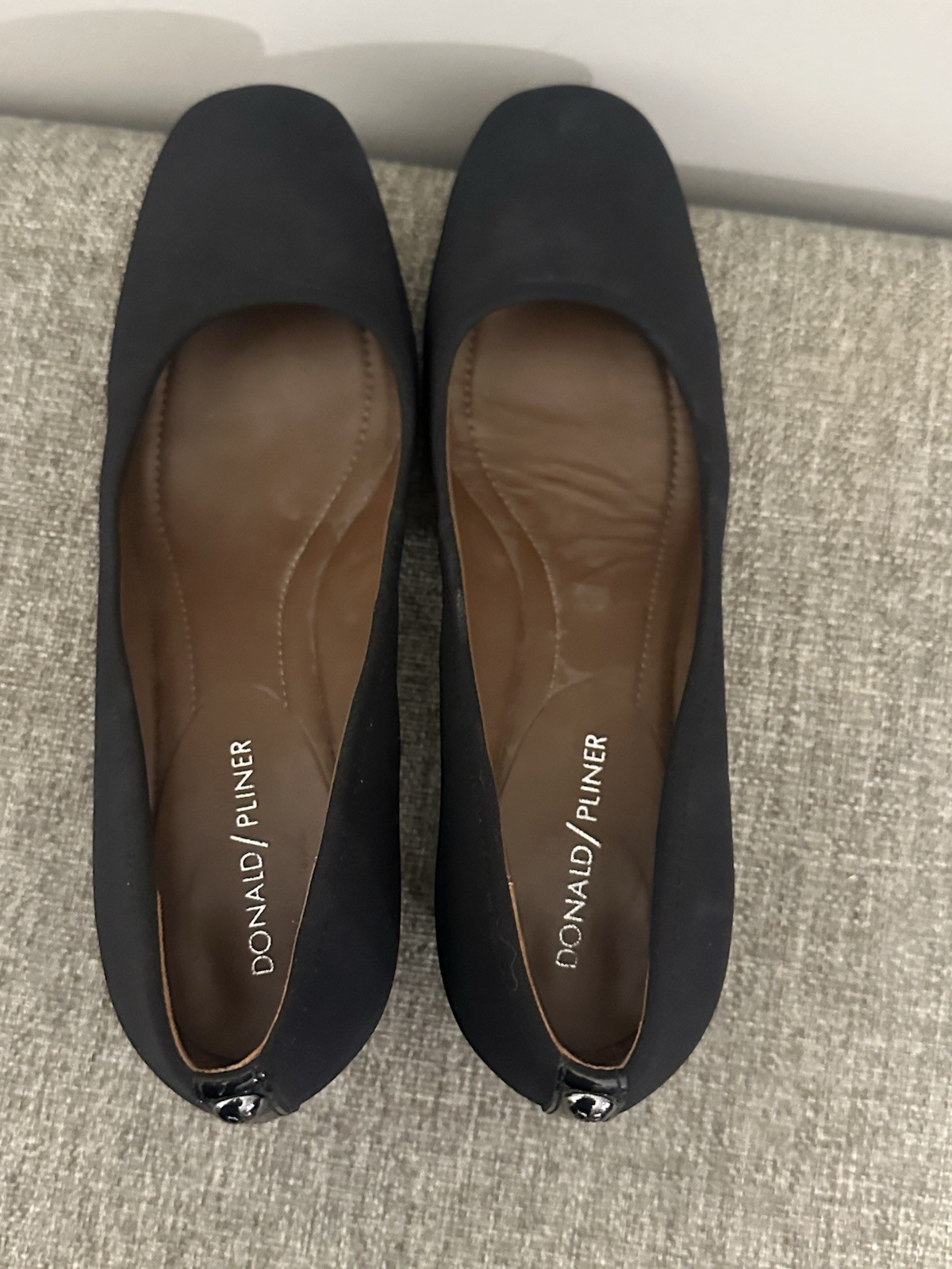 These Donald Pliner Woman's Black Pumps in size 9 are a stylish and sophisticated choice for any woman's wardrobe. With a high block heel and solid black color, they are perfect for going out or metal-themed events. The slip-on style and round toe shape offer comfort and ease of wear, while the synthetic upper material ensures durability. Whether you're dressing up for a special occasion or looking to add a touch of glamour to your everyday outfit, these pumps are sure to make a statement. Preowned Good Condition