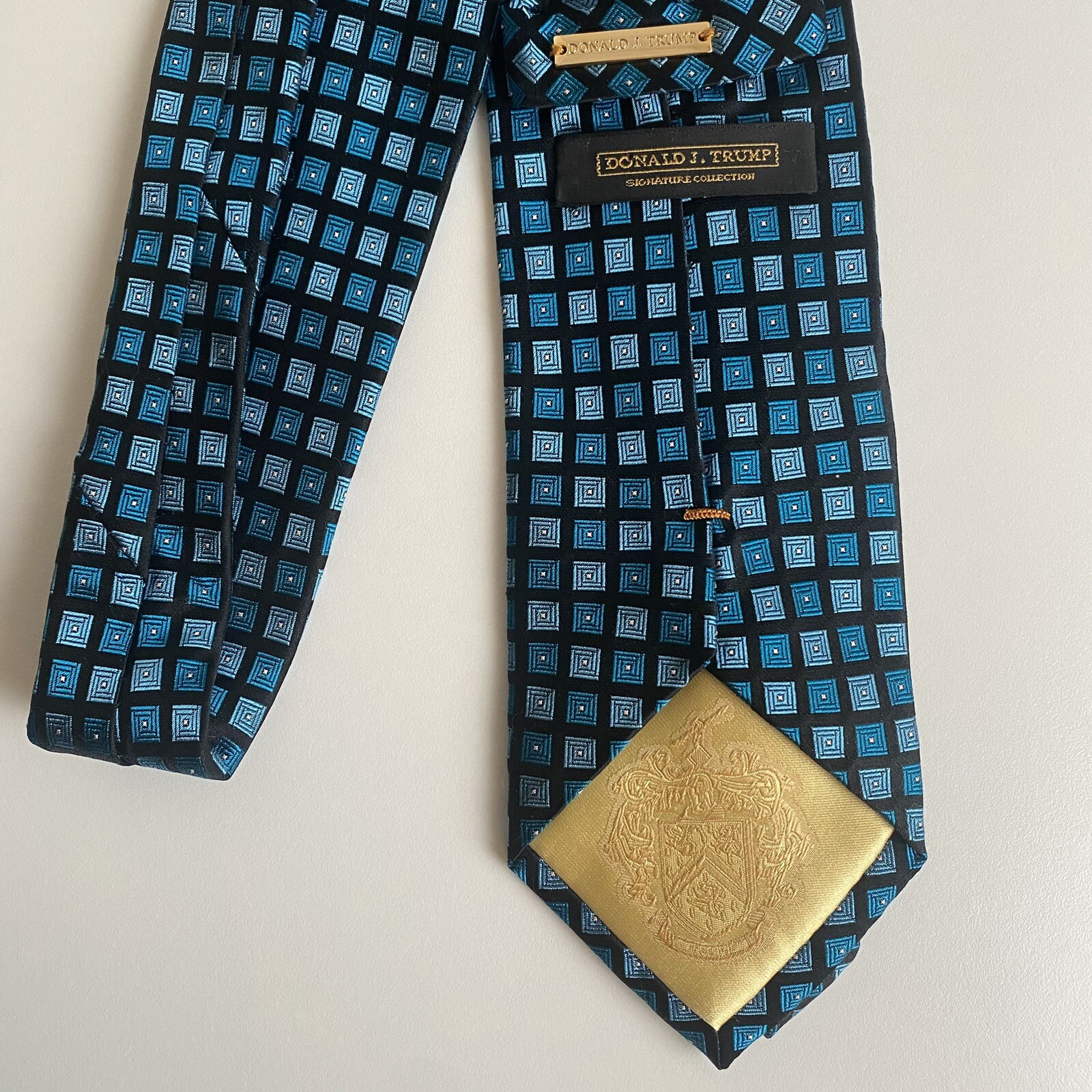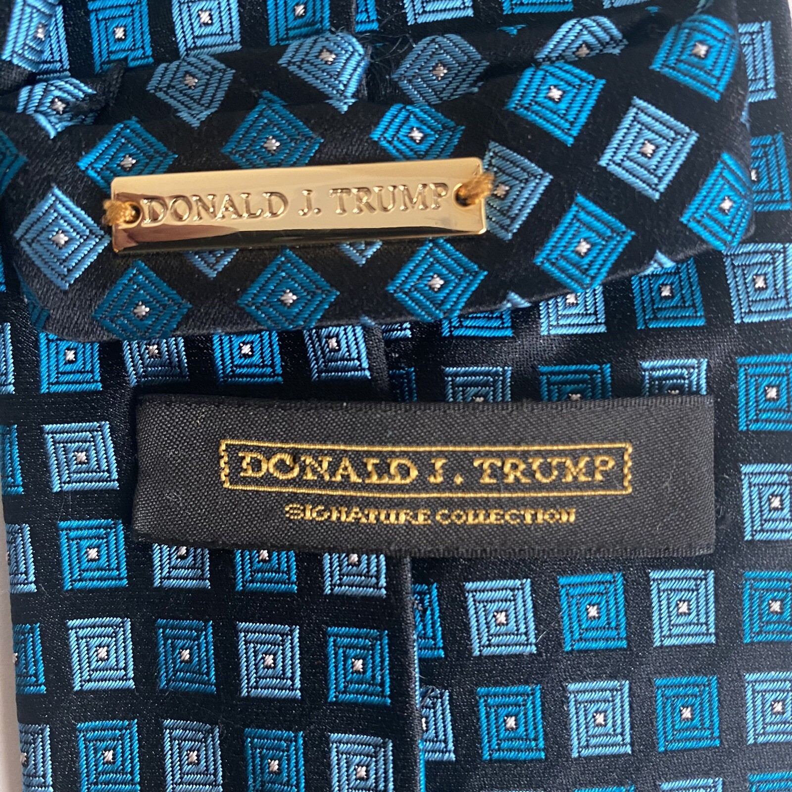 Donald Trump Signature Blue Geometric Silk Tie 60x3.5 with Gold Bar Accent