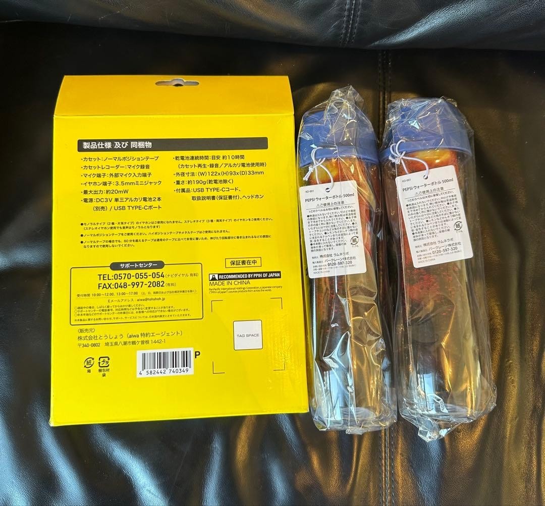 Description Condition: This is a special Back to the Future 40th Anniversary collaboration set from Don Quijote. Both the cassette recorder and Pepsi Perfect bottles are unused and unopened. They were purchased and then stored in a dark place. However, as these were originally displayed in stores, there may be minor initial scratches, individual differences, or packaging imperfections depending on the product. Specification: Brand: AIWA / Pepsi Theme: Back to the Future 40th Anniversary × Don Quijote Collaboration Set Contents: Aiwa Cassette Recorder (Model: PCR-FT) Pepsi Perfect Bottle × 2 Total Items: 3 pieces Type: Cassette Recorder & Collectible Bottles Set Shipping DHL / FedEx / UPS International Buyers - Please Note For U.S. Buyers: Orders to the United States will be shipped under DDP (Delivered Duty Paid) . This means customs duties and taxes are already included in the total amount you pay. You will not be required to pay any additional import fees upon delivery. For Buyers Outside the U.S.: Items will be shipped under DDU (Delivered Duty Unpaid) . Import duties, taxes, and charges are NOT included in the item price or shipping cost. These charges are the buyer's responsibility. Please check with your local customs office before bidding or buying. Important Point If you refuse to pay customs duties (for countries other than the U.S.), we cannot refund the product cost. If you wish to request a return due to damage, malfunction, loss, or any other reason, please contact the store before opening a case.