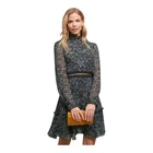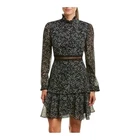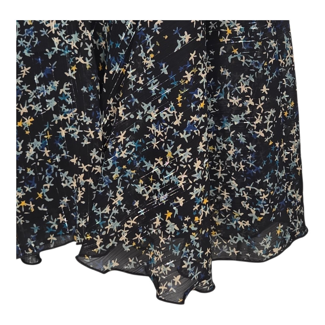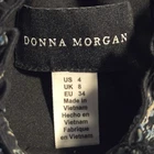 Donna Morgan Womens Countess Dress Size 4 Black/Blue/Yellow/White Mock Neck Back Zip Closure Tiered Flare Skirt Sheer Embroidered Detail Waist Lined 100% Polyester Chiffon Fabric Made In Vietnam 18" Front Chest 36" Length New Without Tags *Quick Shipping *Accepting Reasonable Offers