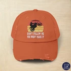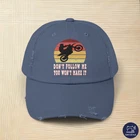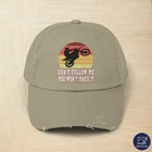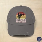 Don't Follow Me You Won't Make It Motor Bike Motorcross is a funny and cool gift for men, women and kids who love BRAAAP, brap, race, riding, motorcyle, rider, bike, helmet, motocross, dirt, biker, jdm, track, freestyle, drift, offroad, diesel, sunset, vintage, sun, funny and cool motive PRODUCT DESCRIPTION Made with 100% cotton twill for high-end comfort and durability, these custom distressed hats bring all the style and practicality one needs in daily life. The low profile along with the D-ring closure on a self-fabric hideaway strap ensures both proper protection from the sun and that perfect, adjustable fit. .: 100% cotton twill .: Sewn-in label .: Closure: self-fabric hideaway strap with metal D-ring slider .: Printed using Direct to Film (DTF) technology .: Please note: Due to a special finishing process, distress and color may vary SIZE GUIDE Imperial One size Crown height, in 6.50 Width of front panel, in 7.37 Bill length, in 2.87 Metric One size Crown height, in 16.51 Width of front panel, in 18.73 Bill length, in 7.30