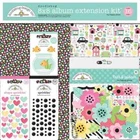 Doodlebug extension kit - My happy Place Transform your memories into a work of art with the Doodlebug Design My Happy Place Collection 8'' x 8'' Album Kit Extension. This all-in-one kit includes everything you need to create a stunning scrapbook album. With 11 double-sided cardstock sheets, 5 petite prints, and an assortment of bits and pieces, stickers, and mini brads, you'll have endless options for customization. The included photo/receipt card protectors in both horizontal and vertical formats, as well as 4 x 4 square protectors, ensure that your precious moments are beautifully preserved. The vibrant colors of pink, yellow, blue, green, and black, combined with whimsical images of flowers, hearts, and houses, will bring your memories to life on every page. Let your creativity soar with the Doodlebug Design My Happy Place Collection. New and factory sealed