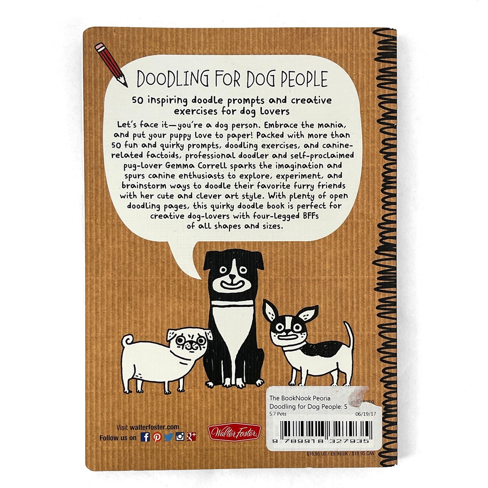 Reviews:"It is sort of like an older version of activity/coloring books, in that it encourages drawing inside the book itself." - Cute Everything blogDewey Decimal:743.6/9772Illustrator:YesItem Weight:11.9 OzFormat:Trade PaperbackDewey Edition:23ISBN-10:160058456Xbrand:Quarto Publishing Group USAgtin13:9781600584565LCCN:2015-510220Intended Audience:TradeGenre:Pets, Art, Games & ActivitiesTopic:Techniques / Drawing, Dogs / General, Guided JournalsItem Height:0.5 inSynopsis:Doodling for Dog People is packed with 50+ fun prompts, doodling exercises, and canine-related factoids. Its portable format and open pages make this quirky doodle book perfect for on-the-go artists., Doodling for Dog People is designed to appeal to seasoned artists and doodle enthusiasts alike. Packed with more than 50 fun and inspirational prompts, doodling exercises, and canine-related factoids, professional illustrator Gemma Correll sparks the imagination and spurs canine lovers to explore, experiment, and brainstorm ways to draw and doodle their favorite furry friends with her cute and clever art style. The artist's simple, unique, and whimsical approach is sure to inspire, entertain, and guide artists of any skill level. Doodlers will find inspiration for drawing different types of dogs, dogs in outfits, dogs in action, and even doggie accessories. An interactive book, Doodling for Dog People demonstrates how to draw whimsical doggie doodles, while encouraging artists and doodle enthusiasts to develop their own style and techniques. With its portable format and plenty of open doodling pages, this quirky doodle book is perfect for on-the-go creative types., Doodling for Dog People sparks the imagination and spurs canine lovers to explore, experiment, and brainstorm ways to draw and doodle their favorite furry friends with a cute and clever art style. Packed with more than 50 prompts, doodling exercises, and fun facts about dogs , Doodling for Dog People offers inspiration for drawing different types of dogs, dogs in outfits, dogs in action, and even doggie accessories. This book is designed to get your creative juices flowing--and your pen and pencil moving! Don't think too much about the prompts; just start drawing dog-related doodles and see where your imagination takes you. There's no such thing as a mistake in doodling! An interactive book, Doodling for Dog People demonstrates how to draw whimsical doggie doodles, while encouraging artists and doodle enthusiasts to develop their own style and techniques. With its portable format and plenty of open doodling pages , this quirky doodle book is perfect for any creative on-the-go dog lover . All you need to get started doodling is this book and a pencil. The books in the Doodling for... series are designed to appeal to seasoned artists and doodle enthusiasts alike. Professional illustrator Gemma Correll packs each book with more than 50 fun and inspirational prompts, doodling exercises, and fun factoids. Her simple, unique, and whimsical approach inspires, entertains, and guides artists of all skill levels.ISBN-13:9781600584565Author:Gemma CorrellLC Classification Number:NC730.C64 2015Item Length:8.5 inItem Width:6 inPublisher:Quarto Publishing Group USANumber of Pages:128 PagesPublication Year:2015Book Title:Doodling for Dog People : 50 Inspiring Doodle Prompts and Creative Exercises for Dog LoversLanguage:EnglishBook Series:Doodling For... Ser.
