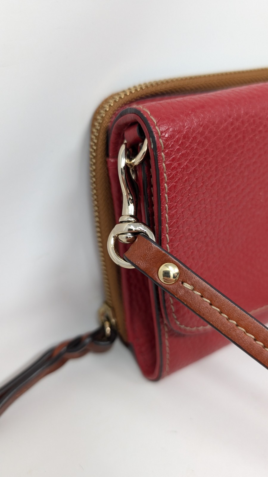 This does have some signs of wear as can be seen in the photos with some light scratching or fading but nothing highly visible at all. If you have any questions or would like to see more please ask. Thank you for looking. The Dooney & Bourke Crossbody Leather Bag/Clutch is a stylish and versatile accessory for women. Made with high-quality leather and featuring a pebbled finish, this small-sized bag is perfect for casual occasions. The snap closure, gold hardware, and adjustable crossbody strap add both functionality and sophistication to the design. The red exterior color and brown leather lining give it a chic and designer look that is sure to make a statement. This bag from the Dooney & Bourke Pebble Grain collection is a timeless piece that can elevate any outfit.