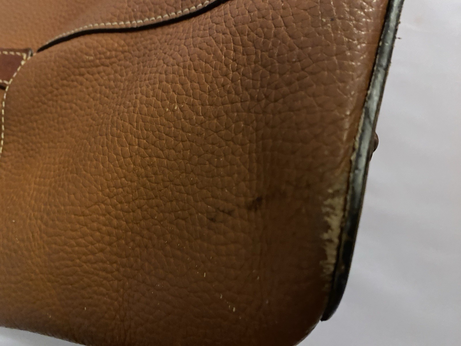 Exceeds the description. The Longchamp leather bag is original and still in very good condition. Very good for its value.. Sellerwas so nice to include a very useful collapsable mirror. Well packed and came on time.