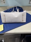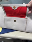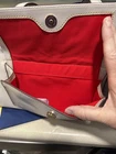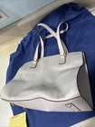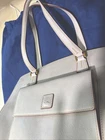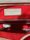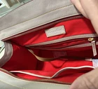 The new Dooney & Bourke 100% Florentine Leather Ecru Shoulder Bag is a large rectangular bag with a zip closure and gold hardware accents. It features a shoulder strap in the same ecru color as the exterior, and is lined with red leather. The bag includes inner pockets, an organizer, and outer pockets, making it a practical and stylish choice for everyday use. It also comes with a key holder and original dust bag, adding to its designer appeal. Perfect for those who appreciate classic, preppy style with a touch of elegance. Love it. Prompt mailing. Returns are fine, but why would you? 🧐