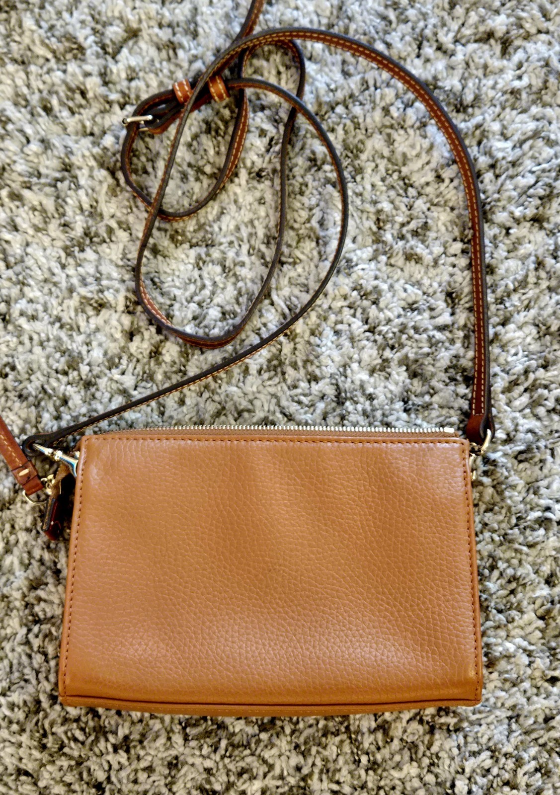 Dooney & Bourke Brown Pebble Grain Leather Saffiano Crossbody Bag Purse - excellent pre-owned condition