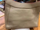 The Dooney & Bourke Fun Florentine Allison Crossbody in Light Taupe is a stylish and versatile handbag designed for women. Made of leather with a solid pattern and gold hardware, this medium-sized bag features a convenient crossbody strap handle style. The exterior color is a timeless light taupe, while the lining is a signature red. The Florentine Allison model combines classic design with modern functionality, making it a perfect choice for everyday use or special occasions. This crossbody bag is part of the Dooney & Bourke Florentine collection, known for its quality craftsmanship and timeless style.Like new only taken once. No marks or stain in great condition. Make this your favorite piece.