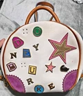 Elevate your accessory game with this limited edition Dooney & Bourke backpack. Designed in collaboration with Lindsay Lohan, this beige and cream leather bag is perfect for any fashion-forward woman. Not only does it have a stylish backpack design, but it also comes with a charming accessory to add a touch of personality to your look. This bag is perfect for everyday use or for special occasions, and its high-quality construction ensures that it will last for years to come.