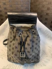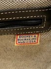 Crafted by the renowned Dooney & Bourke, this medium-sized backpack blends functionality with style. It showcases a chic brown beige tan color scheme, complemented by the classic Dooney & Bourke signature pattern. The mix of canvas and leather materials lends a durable yet sophisticated appeal, suitable for everyday casual wear.The backpack features a spacious interior with a single inside pocket, ensuring your essentials stay organized. About 11 inches in height and 10 inches in width, with a depth of approximately 4 inches, it's the perfect size for carrying your daily necessities. The adjustable leather strap provides comfort, while bottom studs add a touch of elegance. Nickel and silver hardware enhance the overall aesthetic, making this backpack a versatile addition to any wardrobe.