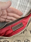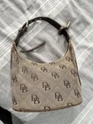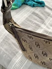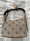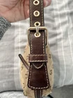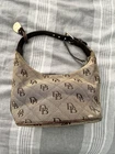 Dooney & Bourke Tan Brown leather trim Small Hobo Bag Logo Canvas Y2K Bag Charm. Condition is Pre-owned - Good. Shipped with USPS Ground Advantage.