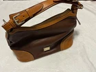 The Dooney & Bourke Wexford Leather Hobo Shoulder Bag is a stylish and spacious handbag designed for women. Made from high-quality leather in a classic brown color, this large shoulder bag features the iconic Dooney Wexford design. The hobo style offers a relaxed and comfortable fit, making it perfect for everyday use or special occasions. With ample storage space and a durable exterior, this bag is a practical and fashionable accessory for any woman's wardrobe.