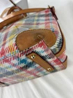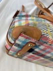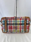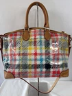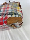 Dooney Bourke Chatham White Bright Plaid Domed Satchel Top Handles Adjustable Shoulder Strap See photos for condition - good condition, a couple scuffs on the acrylic (hard to see) & typical wear, especially on the bottom corners Size 11" x 6.5" x 9.5"
