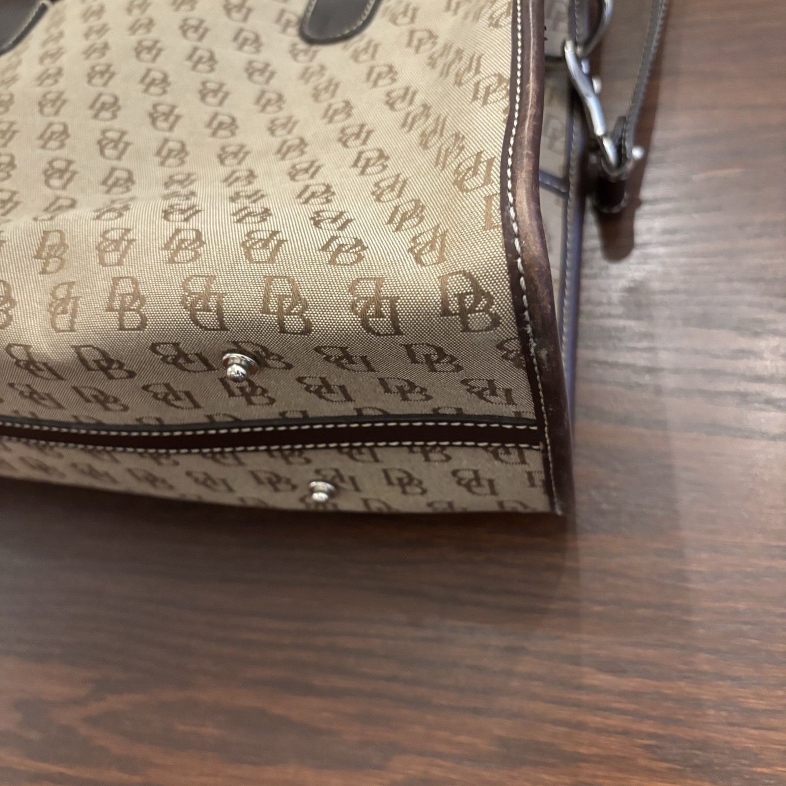 The Dooney and Bourke Signature Tan Brown Double Pocket Tote bag purse is a stylish and functional hobo bag perfect for women on the go. Made from high-quality leather, this bag features a classic tan exterior with double pockets for added convenience. The signature Dooney & Bourke branding adds a touch of sophistication to this versatile accessory, making it a must-have for any fashion-forward woman looking for a reliable and chic bag to carry her essentials.