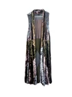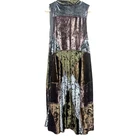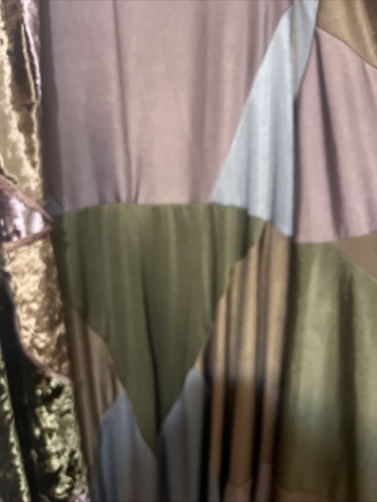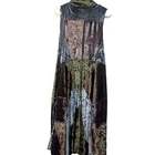The Dor Dor Couture Velvet jewel tones Patchwork duster is a vintage 90s Y2K hippie sweater perfect for any occasion, from party/cocktail to casual or formal events. Made of polyester velvet fabric with a tight-knit design, this sleeveless duster features jewel tones in a smooth patchwork pattern. The multicolor design adds a unique touch to this piece from the 90s, making it a standout addition to any woman's wardrobe. so pretty the colors on beautiful length is 47 inch still in great condition no rips no holes