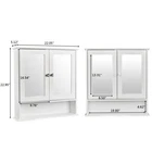 Introductions: If you are looking for a cabinet to store your shavor or cosmetics, this Double Door Mirror Indoor Bathroom Wall Mounted Cabinet Shelf must be a good choice for you. It's fantastic for the bathroom or in any other room where you require some additional storage. Adopting high quality MDF material, it features smooth, stable and sturdy. With a mirror design, it's very convenient for use. Moreover, it's wall-mounted, which is space saving. With high quality and fine workmanship, it's worth buying! So don't hesitate, just take it home! Features: 1. Made of high quality material, smooth, sturdy and durable 2. Waterproof, suitable for humid environment 3. It has a long service life 4. Wall-mounted, save space 5. Add some additional storage for you 6. Magnetic lock to hold doors shut 7. Convenient for use Specifications: 1. Material: MDF 2. Color: White 3. Dimensions: (22 x 5.1 x 22.8)" / (56 x 13 x 58)cm (L x W x H) 4. Weight: 13.23 lbs / 6 kg Package Includes: 1 x Double Mirror Bathroom Cabinet 1 x Manual