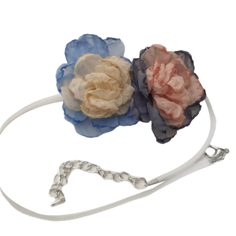 Features: The double flower choker is made of cloth, soft and comfortable, and will not hurt the skin. Easy to wear. The right size fits most girl. Can matchs most different styles of clothes. Simple necklaces are fashionable and cool, making you look more attractive, thus attracting others' attention. You can wear these necklaces at concerts, birthday parties, masquerade parties, Halloween, role plays, Christmas or everyday wear. The choker necklace can also be used as Halloween gift, Christmas gift and New Year gift for family or friend. Specifications: Material: Fabric Lace Up/Tail Chain Lace Up Length: About 130cm/51.18inch Tail Chain Length: About 45cm/17.72inch Package Includes: 1x Necklace note: Please allow 1-2cm errors due to manual measurement, make sure that you do not mind before you order. Due to the difference between different monitors, the picture may not reflect the actual color of the item.
