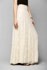 Double Lace Layer Chiffon Pleated Long Maxi Skirt Elastic Waist Long Skirt