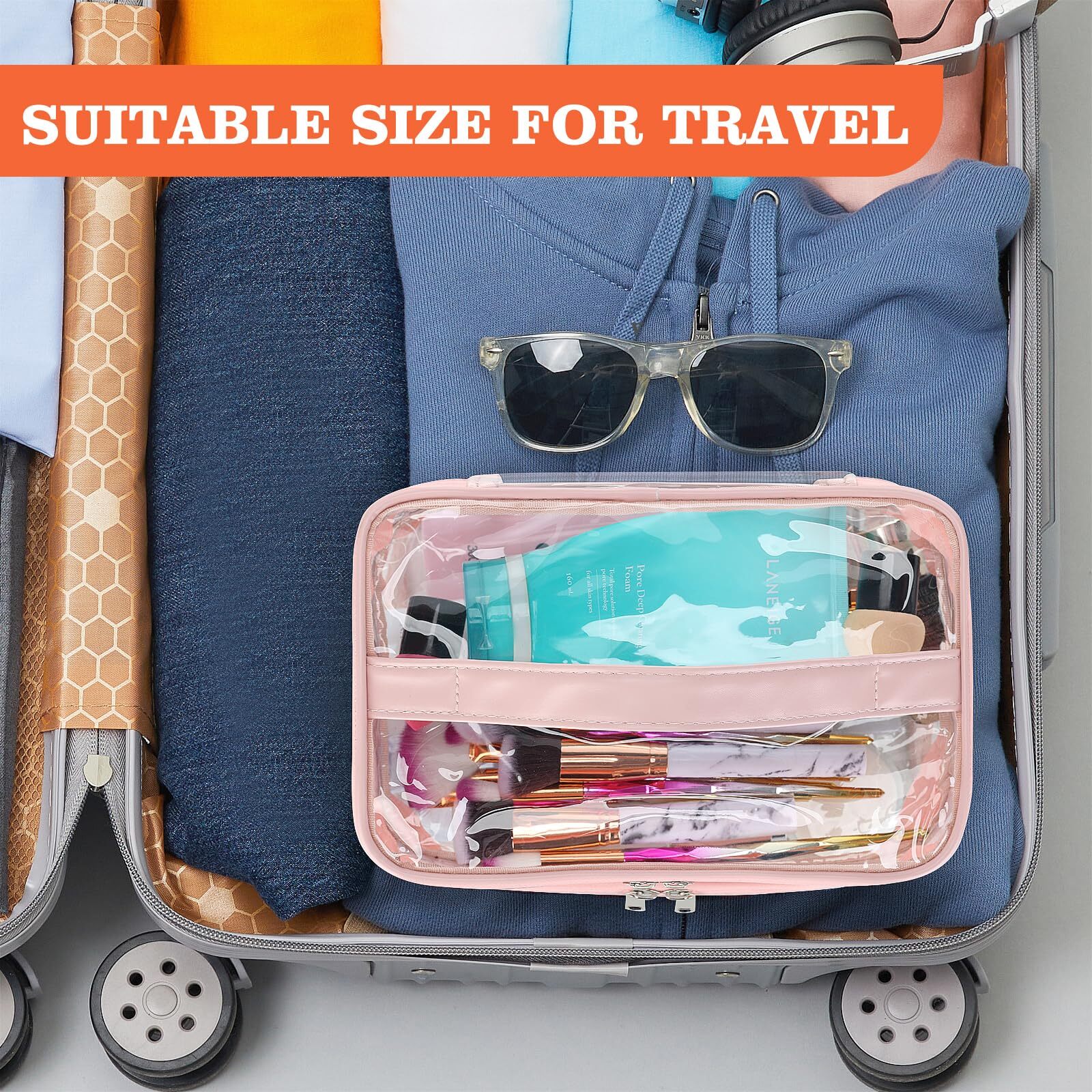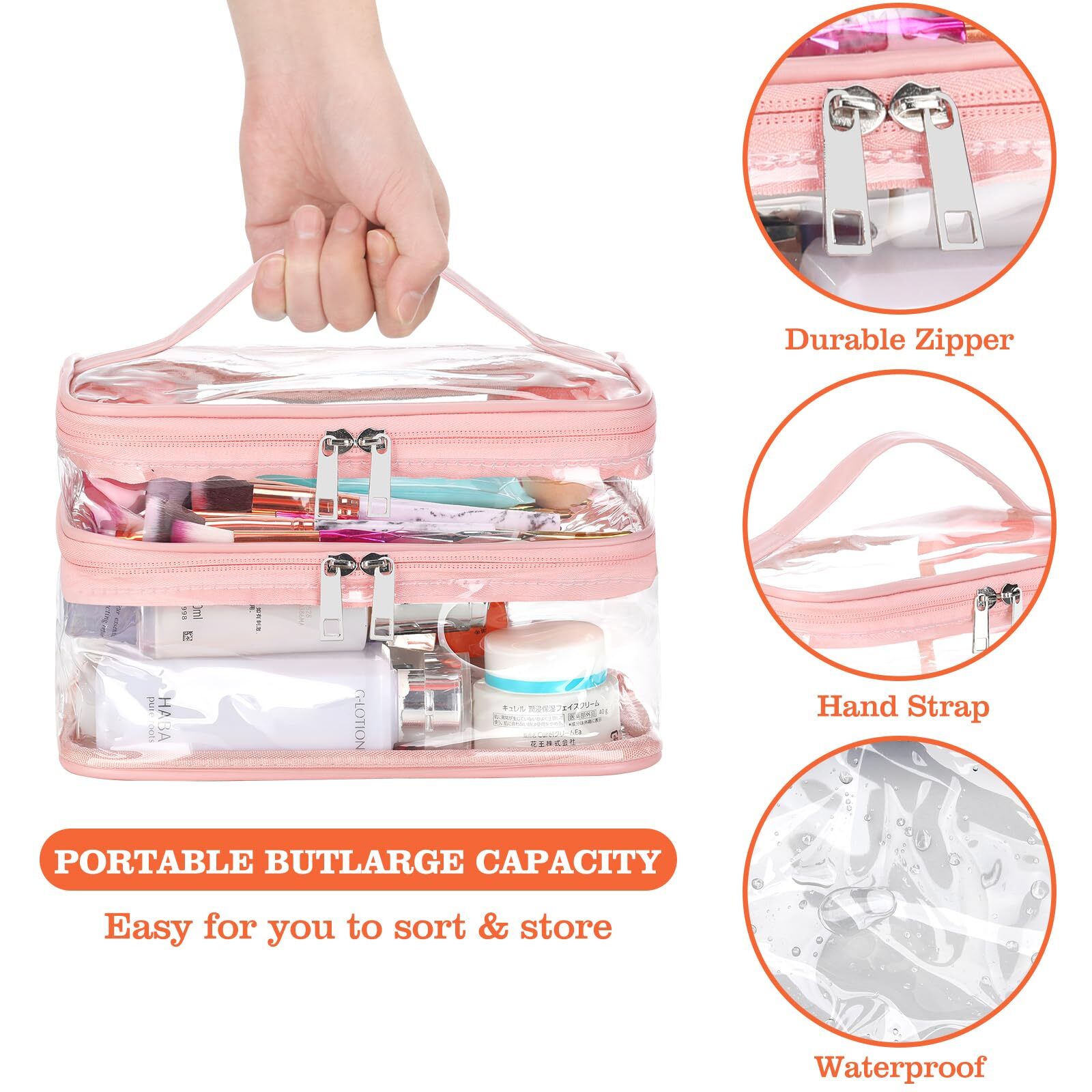 HAOGUAGUA Double Layer Clear Cosmetic Bag Makeup Bag, Waterproof Travel Toiletry Bag, Transparent PVC Pouch Organizer (Pink Large) QUALITY MADE - Made from durable and clear PVC material,Reinforced stitching seam and sturdy double zipper make sure this clear makeup bag can bear long term use without tearing on the seam DOUBLE LAYER DESIGN - This clear makeup bag features double layers, which can be pulled out respectively. You can use the top and bottom layers for different shapes of makeup, or for dry and wet separation, making your makeup better organized LARGE CAPACITY - 9*6.7*4.7inch/233*17*12cm, have enough space to storage your makeup and cosmetic accessories. It is versatile and can accommodate any items other than makeup. FIND ITEMS FASTER - This clear cosmetic bag is made of PVC material, it is the transparent visual performance that you can see clearly what's inside the bag and make finding your daily makeup so much easier to find instead of digging in a bag thus save your time MULTIPURPOSE - This clear bag can be used as cosmetic bag, makeup bag, toiletry bag, medicine bag, storage bag, waterproof bag, gift bag, jewelry bag, general packaging, daily necessities packaging bag, cosmetics bag, travel bag. It can be used for a wide range of small items, such as lipstick, lipstick, blush, makeup brush, eye shadow, etc SHIPPING Domestic Buyers - We have confidence in our products, but if you are not fully satisfied please contact us within 30 days of purchase and you will get full refund. - We ship within 3 business days of payment, usually sooner - We offer FREE shipping on all orders! - We only ship to the lower 48 states, no APO/FPO addresses or PO Boxes allowed International buyers – please note: Import duties, taxes, and charges aren't included in the item price or postage cost. These charges are the buyer's responsibility. - Please check with your country's customs office to determine what these additional costs will be prior to bidding or buying. * Order Cancellation Policy ** You can return a product for up to 30 days from the date you purchased it. 1. The seller reserves the right to cancel the special case only due to eBay cancellation fee. 2. The decision of seller is the final. 3. The seller will respond to the cancellation request within 2 business days. Please wait for the result of cancellation. 4. In case the cancellation is not completed by some reasons, the buyer can follow the options below to get the refund. 4.1 The buyer can reject the item when it arrives. 4.2 The buyer can send the item back to the seller within 30 days If the buyer receives item (USA Shipment ONLY). The seller will provide the FREE return label to the buyer when the buyer opens " Return Item" case on eBay by using the reason as "Change my mind" ONLY. 5. When buyer has placed the order. The order will be processed and completed by automatic warehouse system within 5 minutes. In case that buyer sends the cancellation request after 5 minutes of placing the order, the request will be rejected. **Sending direct message to cancel the order is not allowed for every case.* Return Policy For the return case - If buyer would like to return the items for refund or replacement, please CONTACT SELLER to receive the free return label from seller. The refund or replacement will be processed with the tracking number of return label which is provided by seller only. The other ways of return which are not approved by seller will not be processed for the refund or replacement.
