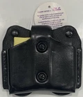 Double Magazine Pouch A01BJEEZ0 Case Holster For Most Single Stack 9MM/40CAL Magazines DeSantis GunHide . Genuine Leather. Made in The USA. Desantis A01BJEEZ0 Black Leather Ambidextrous Double Magazine Pouch Compatibility: DeSantis produces sturdy and innovative ammunition & magazine pouches. Our Double Magazine Pouch is designed to perfectly fit multiple firearms, including MOST SINGLE STACK 9MM/40CAL, Snap-To-The-Belt Design: With the snap-to-the-belt design and fully adjustable dual tension device, our magazine holders can be carried horizontally or vertically, which boosts adjustability and accessibility in any situation. Supreme Construction: Crafted with premium and robust unlined leather, the DeSantis magazine pouch offers incomparable retention, durability, and rigidity while maximizing comfort. Accommodates Belts: This pistol magazine pouch can easily fit belts up to 1 3/4" wide and provides superior protection and stability to your pistol magazines. Available in attractive black color, the belt pouch can complement any outfit. Unisex, Ambidextrous: DeSantis Mag Pouch is ideal for adult men and women. Both left-handed and right-handed shooters can use this mighty magazine pouch during everyday concealed carry activities.