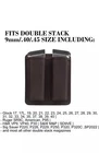 This double magazine pouch is made of genuine leather and is designed for universal pistol models. It can hold up to 2 magazines and is suitable for calibers such as .40 S&W, 9 mm Luger, 9 x 57 mm Mauser, and .45 ACP. The pouch comes in a brown color and can be carried on a belt or inside a waistband. The lightweight and multifunctional design makes it perfect for hunting and other outdoor activities. It comes with a 3-month manufacturer warranty and is ambidextrous, making it suitable for both left- and right-handed individuals. This magazine pouch is a must-have for any pistol owner who wants to carry their magazines conveniently and securely.