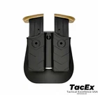 Universal Dual Magazine Holder For Single Or Double Stack Magazines 9mm,10mm,40, 45 ACP PADDLE BELT CLIP FORMAT High quality and durable- Made of durable high-tec polymer materials Extreme temperature tolerance Fully adjustable- Adjust the magazine pouch cant is easily with included Allen key Complete comfort- Comfortable soft silicone paddle securely fits magazine pouch to belt Paddle belt clip format Fast and easy draw while still providing great retention Can be attached to- Paddle Belt loop MOLLE Drop Leg platforms Package Includes- 2- Double mag holster with locking belt clip 2-Allen tools 2- Set screws with rubber backing Some 45 cal mags will not fit MAGAZINES NOT INCLUDED***********************
