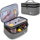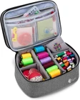 Double-Layer Sewing Accessories Organizer, Sewing Supplies Organizer for Needles, Thread, Scissors, Measuring Tape and Other Sewing Tools, Large/Gray PREMIUM MATERAIL: Made of heavy-duty nylon. Well-padded lining keeps sewing accessories in good condition. (Accessories are not included.) TOP COMPARTMENT: Several elastic loops to store thread, 2 zipper pockets to hold your scissors and small sewing supplies. LARGE BOTTOM COMPARTMENT: 4 detachable dividers and 1 pin cushion separate your needles, measuring tapes, spools of thread and other sewing accessories. 1 zipper pocket and 2 mesh pockets to store other sewing items you need. HANDY DESIGN: A reinforced stitch handle on the top for carrying easily. Two-way zipper closure for quick access. DIMENSIONS: " x " x "(L x W x H). Enough space to carry what you need, which is good for traveling and suitable for daily use. Designed for Function & Pretty