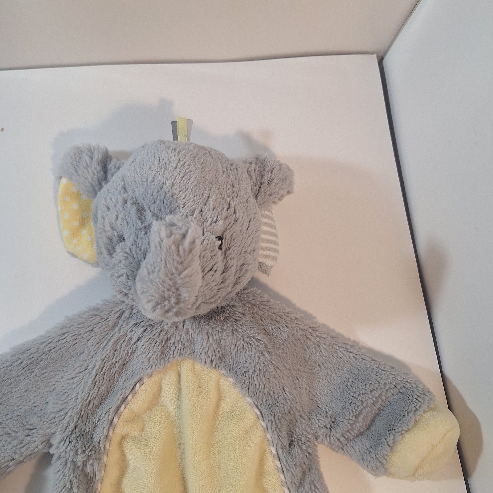 The Douglas Baby Plush Gray Elephant Sshlumpie Lovey Security Blanket Cuddle Toy is a small stuffed animal featuring an adorable gray elephant design. Perfect for cuddling and providing comfort, this plush toy is ideal for baby playtime or as a security blanket for naptime. The Douglas brand ensures high-quality and soft materials, making this cuddly toy a beloved addition to any child's collection.