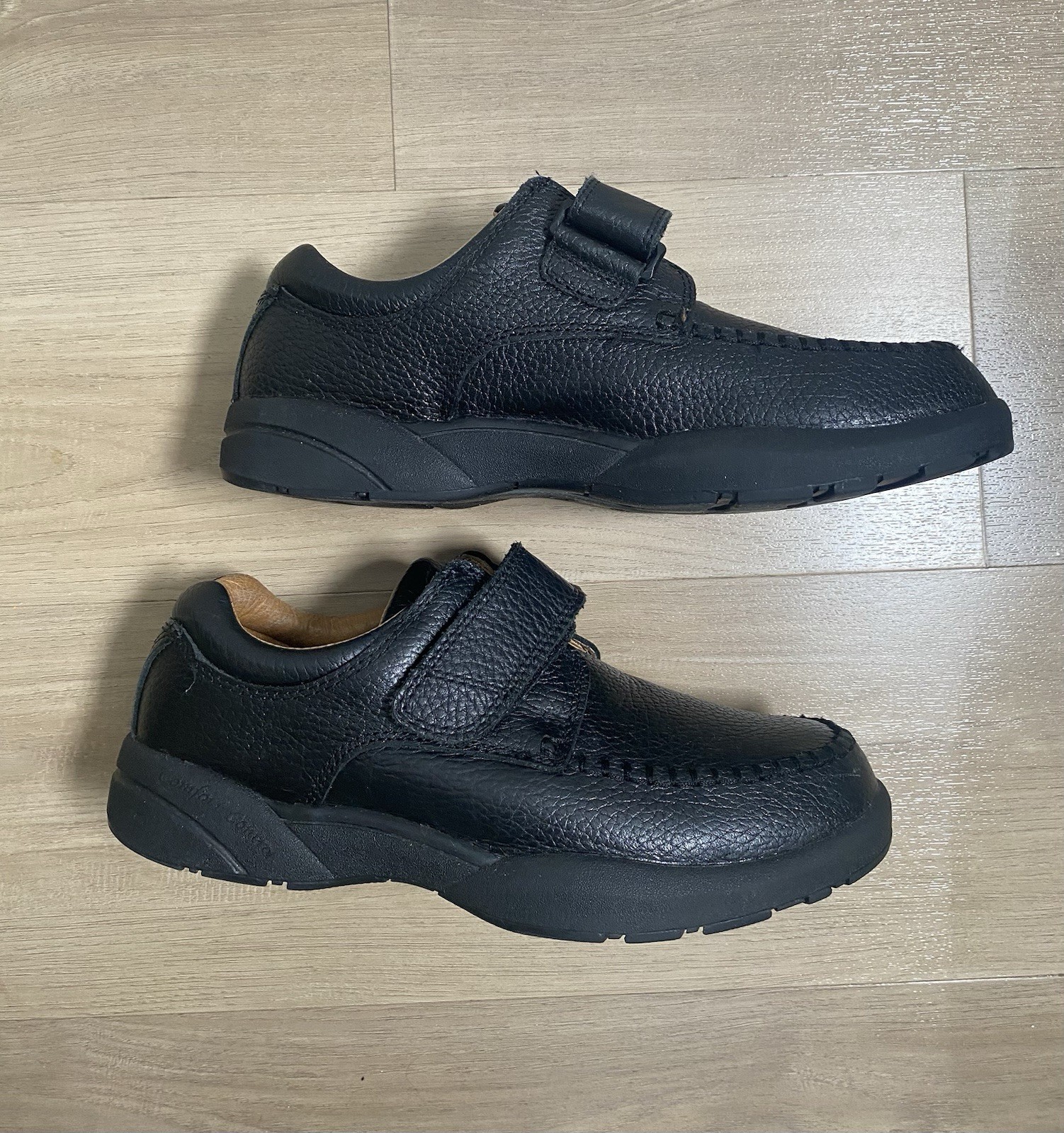 Preowned. In very good condition. PLEASE REFER to PICTURES. The Dr. Comfort Scott 9210 Black Leather Diabetic Orthopedic Shoe Strap is a durable and supportive footwear option for men. Featuring a round toe, hook & loop monk-strap closure, and XW shoe width, these shoes are designed for comfort and practicality. The black leather material and foam insole provide a stylish yet therapeutic experience, making them suitable for various occasions including travel, casual wear, and workwear. With a focus on diabetic care and orthopedic support, these shoes are a reliable choice for year-round wear.