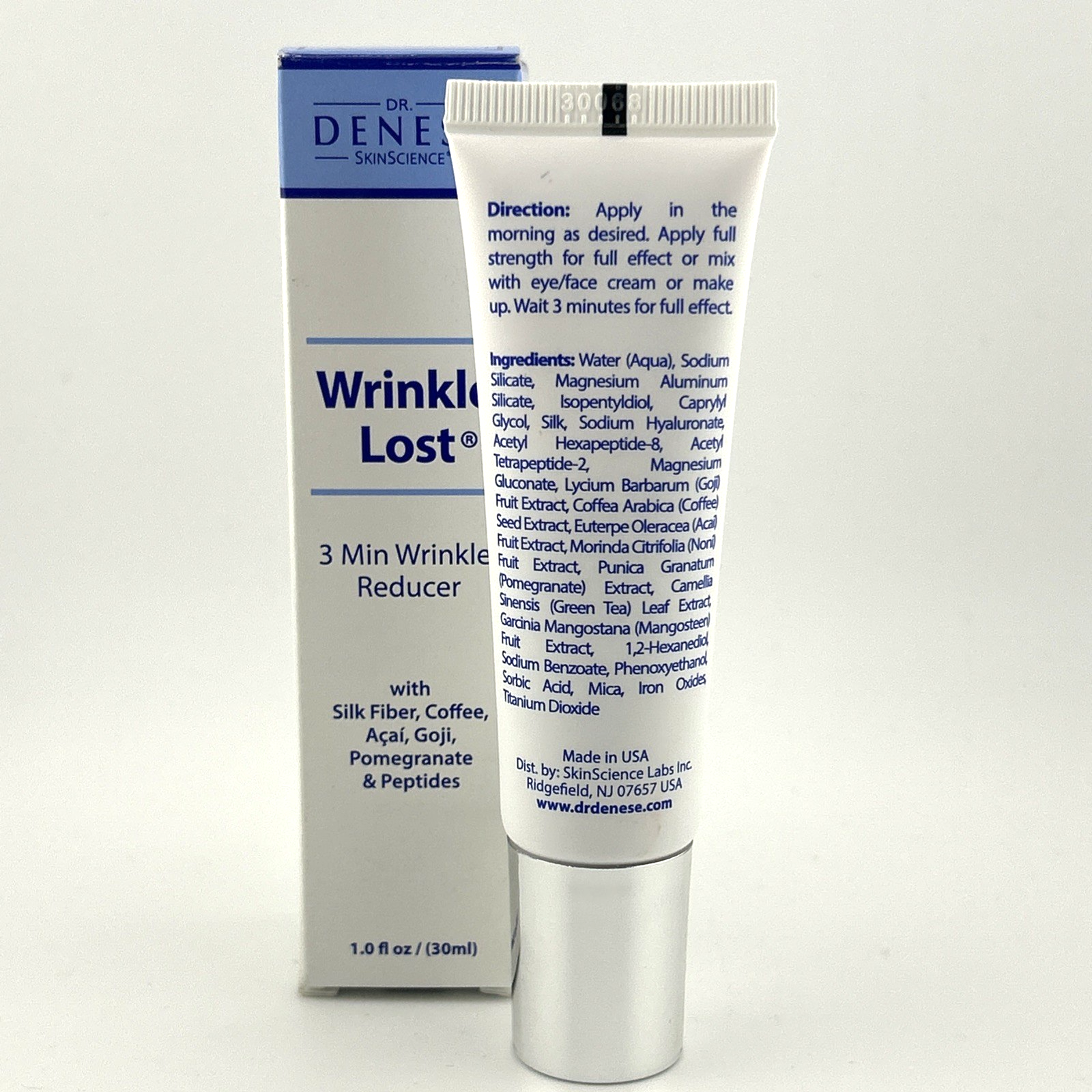 Dr. Denese Wrinkle Lost 3 Minute Wrinkle Reducer – 1oz / 30ml – New & Sealed Turn back the clock in just minutes with Dr. Denese Wrinkle Lost 3 Minute Wrinkle Reducer . This advanced formula is designed to visibly reduce the look of fine lines and wrinkles almost instantly—perfect for special events or daily confidence boosts. 🌟 Product Highlights: Brand: Dr. Denese Size: 1 fl oz / 30 ml Target Areas: Forehead, under-eye, crow’s feet, and smile lines Effect: Instant temporary tightening and smoothing Skin Type: All skin types Use: Apply to clean, dry skin – great under makeup Condition: 🔹 Brand New & Sealed Fast Shipping | 📦 Carefully Packaged | 💯 Authentic Achieve smoother, more youthful-looking skin in minutes—no appointment necessary!