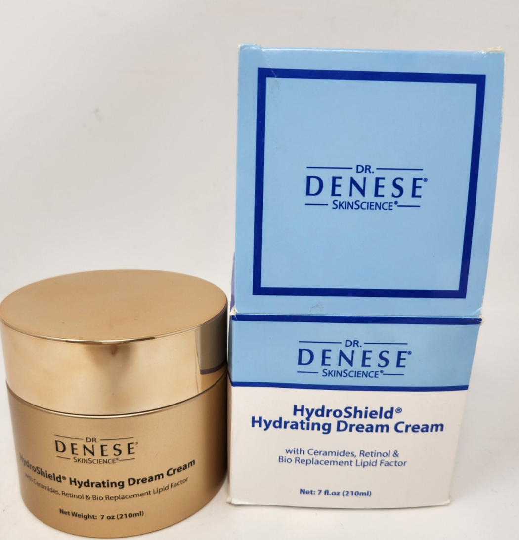 Give your skin the ultimate nighttime renewal with Dr. Denese HydroShield Hydrating Dream Cream , featuring a powerful blend of ceramides + retinol . This large 7 oz / 210 ml sealed jar delivers deep moisture and advanced anti-aging benefits to help restore smoothness, firmness, and radiance. ✨ Product Details Brand: Dr. Denese Product: HydroShield Hydrating Dream Cream Key Ingredients: Ceramides + Retinol Size: 7 oz / 210 ml Condition: Brand New / Factory Sealed No box Skin Type: Ideal for dry, mature, or aging skin