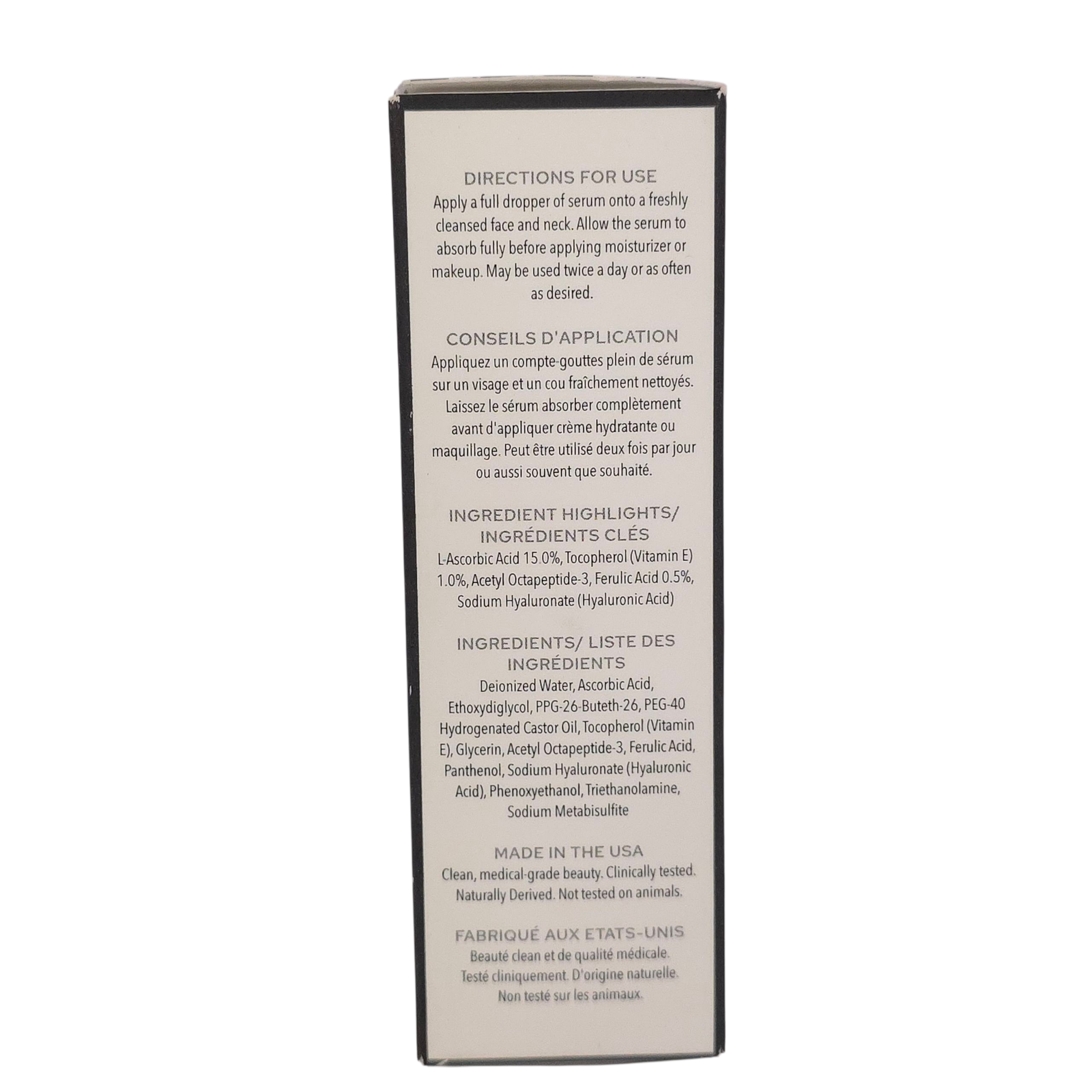 First photo is an example of what item looks like inside the box. All other photos are of the exact item you will receive. All items are shipped ground advantage same or next day. Condition: Brand new in box and sealed. Dr Lara Devgan Vitamin C+B+E Ferulic Serum 1oz. Powerful antioxidant serum designed as a skin booster for healthy, glowing, and even skin tone. High concentrations of Vitamin C (15%), Vitamin E, Vitamin B derivatives, and Ferulic Acid deliver impactful results in a supple serum formula. Ingredient highlights: L-Ascorbic Acid 15.0%, Tocopherol (Vitamin E) 1.0%, Acetyl Octapeptide-3, Ferulic Acid 0.5%, Sodium Hyaluronate (Hyaluronic Acid). Made in the USA