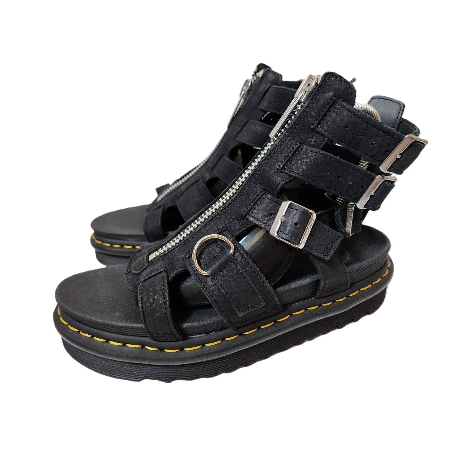 Dr. Martens Olson Tumbled Nubuck Sandals Charcoal Grey is the color labeled on the box (looks dark enough to be black) Zip front entry, chunky sole, adjustable buckle straps Women's US size 9 EU 41 New unworn condition with box