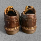 The product is a pair of vintage Dr. Martens 90s chunky brogue brown leather shoes in UK SIZE 7. US conversion for Doc Martens is not your typical conversion: US MEN SIZE 8/// US WOMENS SIZE 8. These lace-up shoes feature a round toe shape, and are suitable for casual occasions. Made with leather lining and outsole, they are ideal for all seasons and have a stylish 90s theme. With a solid brown color and durable leather construction, these Dr. Martens shoes offer a great deal for anybody looking for a classic and timeless footwear option. They have creasing on the front of shoe. On the top left are the shoelace hole there seems to be a chew mark or scratch. You can’t see it with the shoelaces in. The soles of the shoe seem to be in great shape as well as the inside sole. I cleaned them and some of the ink rubbed off on the inside. These shoes overall are in good shape and have a lot of life left in them! Feel free to ask any questions!! Thanks for shopping! Please note: UK size 7 typically converts to: A US men's size 8. A US women's size 8.