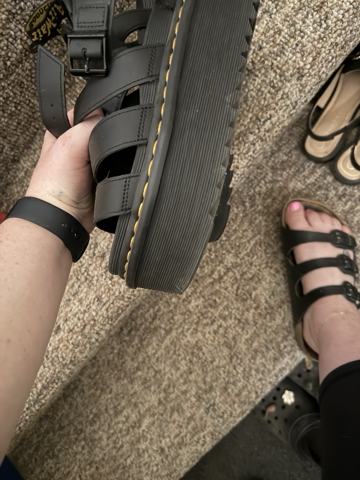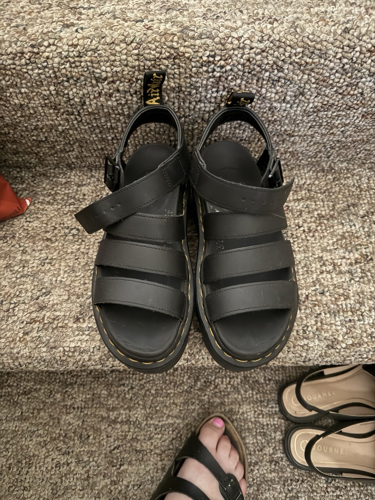 Lightly Used Doc Martens platform sandals with ankle strap and buckle, fronts have little wear, worn 10-20 times, I just don’t wear them as often as I thought I would. Size 7 in US, Paid $200 new