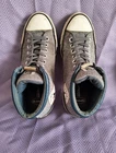 The product is a pair of Converse Chuck Taylor All Star Comfort sneakers in blue, designed for men in size 8. They feature a lace-up closure and are suitable for athletic activities. The sneakers have a stylish star theme and are part of the Dr. Scholl's product line, offering comfort for the wearer. They can also be worn by women who wear a size 10. Item is used and therefore shows signs of wear see photos for any details, measurements and/or flaws. Highly suggest that you clean the item before the first use to cleanse any spots or stains.