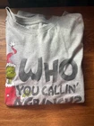 This is a men's short sleeve T-shirt featuring a graphic print of the character Grinch from Dr. Seuss. The shirt is gray in color and has a crew neck neckline. It is a size Medium and made of a knit fabric blend of polyester and cotton. The shirt is suitable for summer, fall, and spring seasons, and is machine washable. It is a relaxed fit and part of the Christmas, holiday, and cartoon themes.