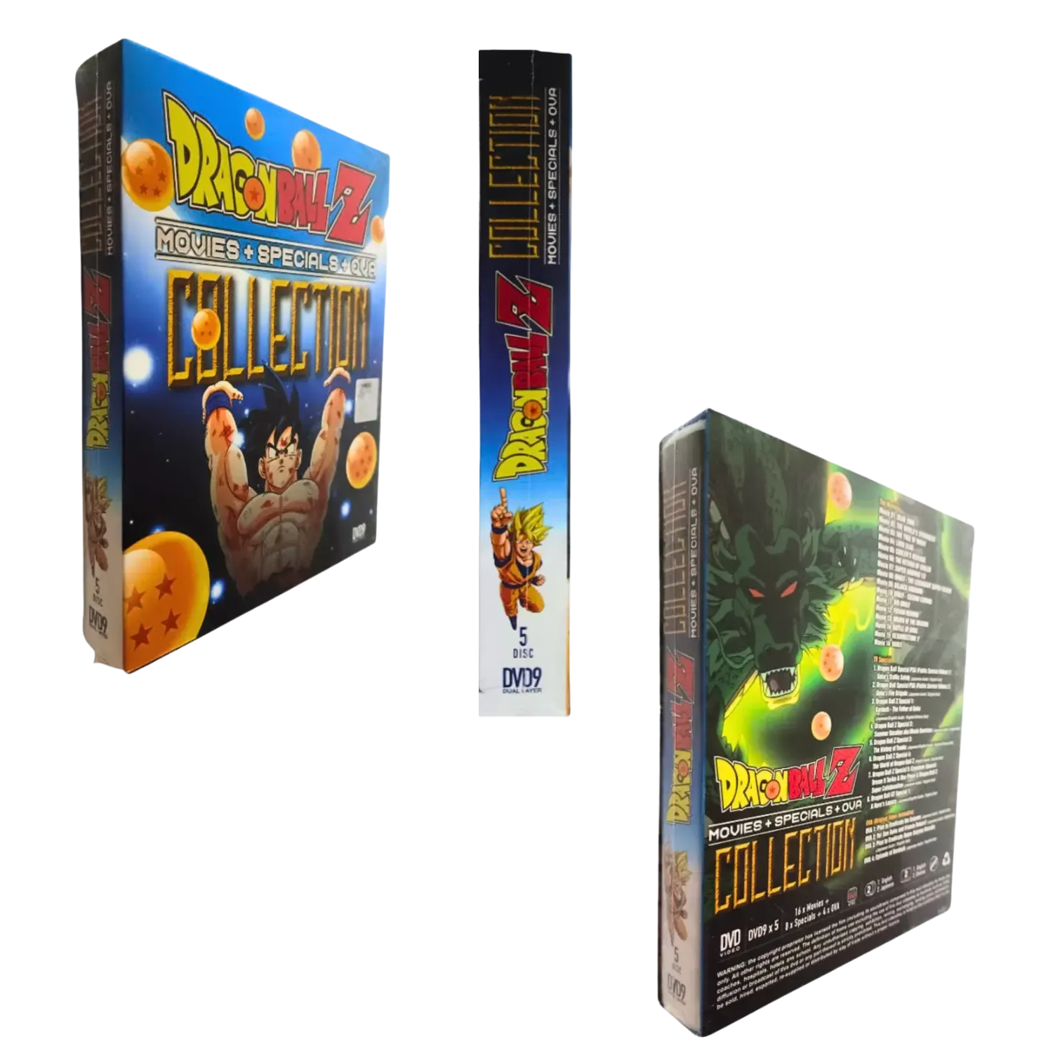 DVD Anime Dragon Ball Z Collection 16 Movies+8 TV Specials + 4 OVA Ship From USA Product Description: Dragon Ball Z Movie Collection (16 Movies + 8 SP + 4 OVA) No. of Discs: 5 DVDs in 1 Box set Language : Japanese / English Subtitle : English / Chinese Region: All Region, Can play in DVD player worldwide Movie 01: Dead Zone Movie 02: The World's Strongest Movie 03: The Tree of Might Movie 04: Lord Slug Movie 05: Cooler's Revenge Movie 06: The Return of Cooler Movie 07: Super Android 13! Movie 08: Broly - The Legendary Super Saiyan Movie 09: Bojack Unbound Movie 10: Broly - Second Coming Movie 11: Bio-Broly Movie 12: Fusion Reborn Movie 13: Wrath of the Dragon Movie 14: Battle of Gods Movie 15: Resurrection ‘F’ Movie 16: Broly TV Special Dragon Ball Special PSA (Public Service Videos) 1: Goku's Traffic Safety (Japanese audio / English subtitle) Dragon Ball Special PSA (Public Service Videos) 2: Goku's Fire Brigade (Japanese audio / English subtitle) Dragon Ball Z Special 1: Bardock - The Father of Goku (Japanese / English Audio & English / Chinese subtitle) Dragon Ball Z Special 2: Summer Vacation aka Movie Overview (Japanese Audio / English subtitle) Dragon Ball Z Special 3: The History of Trunks (Japanese & English audio / English / Chinese subtitle) Dragon Ball Z Special 4: The World of Dragon Ball Z (English audio / English subtitle) Dragon Ball Z Special 5: Crossover Special: Dream 9 Toriko & One Piece & Dragon Ball Z Super Collaboration (Japanese audio / English subtitle) Dragon Ball GT Special 1: A Hero's Legacy (Japanese & English Audio / English subtitle) OVA (Original Video Animation) OVA 1: Plan to Eradicate the Saiyans (Japanese Audio / English subtitle) OVA 2: Yo! Son Goku and Friends Return!! (Japanese Audio / English subtitle) OVA 3: Plan to Eradicate Super Saiyans Remake (Japanese Audio / English subtitle) OVA 4: Episode of Bardock (Japanese Audio / English subtitle) Payment : We accept via payoneer Shipping : We ship using USPS media mail in US region. Our handling time is 1-3 business day. estimated time delivery from our warehouse is 2-8 business day. If you need fast shipping, we also provide express shipping using USPS first class. estimated time delivery is 2-5 business days. Return : We accept free return but you need to inform us within 30 days. we will refund to you after we receive the item in a good condition. do email and communicate with us before leaving any negative feedback.