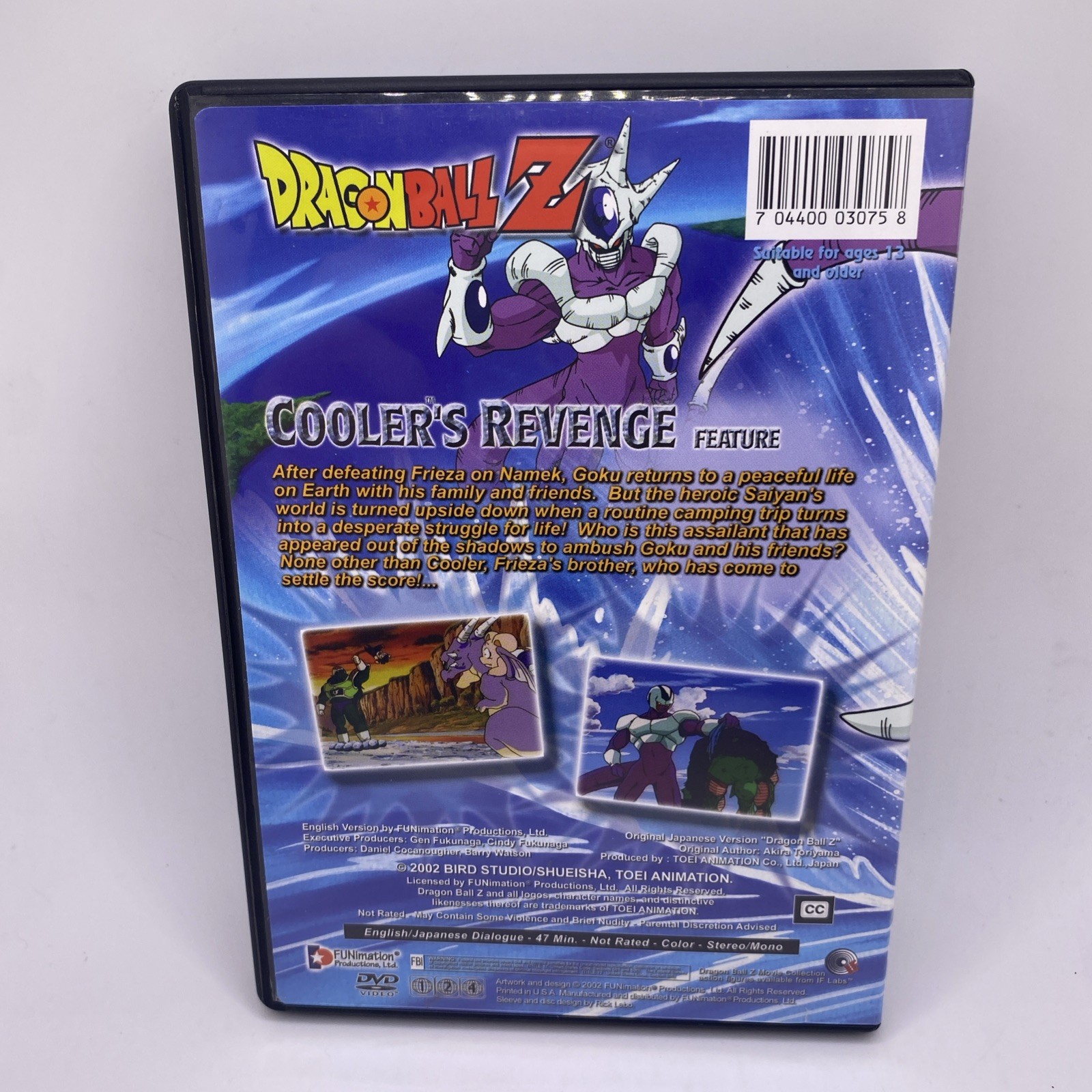 The Dragon Ball Z DBZ The Movie Coolers Revenge DVD 2002 Uncut & Edited Edition is a must-have for fans of the popular anime franchise. This DVD features the uncut and edited versions of the movie, providing an immersive viewing experience for fans of action and adventure. With Dragon Ball Z as the director, producer, and actor, this DVD offers a captivating portrayal of the beloved characters in the Dragon Ball Z universe. Produced by FUNimation and released in 2002, this DVD is a valuable addition to any anime collector's library.