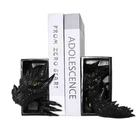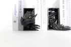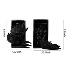 Transform your bookshelf into a realm of fantasy with these striking dragon bookends. Crafted with intricate detail, these black dragon designs appear to emerge dramatically from your collection, creating an eye-catching 3D effect. The fearsome dragon head with its piercing yellow eyes guards one end, while the scaled tail anchors the other, making them perfect for securing your favorite novels, encyclopedias, or magical tomes. These gothic-style bookends serve both as functional shelf organizers and captivating decorative pieces that add a touch of mystical charm to any library, study, or reading nook. The dimensional design creates an illusion that the dragon is literally breaking through your bookshelf, making it a conversation starter and unique display piece. Ideal for fantasy literature enthusiasts, collectors, or anyone looking to add a dramatic flair to their home decor. These bookends are sturdy enough to support your books while bringing an element of medieval fantasy to your space. UNIQUE DESIGN: Striking black dragon bookends featuring detailed scales, claws, and yellow eyes that create a dramatic 3D effect emerging from your bookshelf VERSATILE DISPLAY: Perfect for fantasy book collections, these bookends can be used between books, at shelf ends, or as standalone decorative pieces STURDY CONSTRUCTION: Durable black finish and solid construction ensures books stay upright while adding a bold decorative element to your space PERFECT SIZE: Compact yet impactful dimensions make these dragon bookends ideal for standard bookshelves while holding books securely in place GOTHIC DECOR: Adds an enchanting fantasy element to any library, office, or reading nook with its detailed dragon design and mysterious appearance