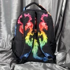 Dragon Fire Backpack Black Rainbow Book Bag Kids Elementary School Flames Travel