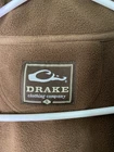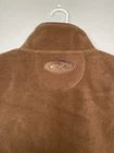 Brown fleece Drake Waterfowl Systems vest in size small features a warm fleece fabric, ideal for outdoor activities in winter, fall, or spring. It features a full-zip closure and stand-up collar with several pockets for both comfort and functionality. The magnaattach pocket levels up accessibility while on outdoor adventures!