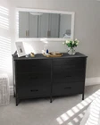 ✅【 Steel Wood Frame, High Stability 】The bedroom dresser is made of steel wood frame, structure is stable, thus avoiding the inconvenience caused by insufficient or misaligned holes. X-shaped steel frame on the back further enhances chest of drawers stability.The top of dresser support weight up to 300lbs, each drawer can support weight 30lbs, built to last feel ✅【 Ample Storage Space 】This nice chest of drawers for the price, assembly size: 47.3X15.8X30.8in, the drawer size:22X14.8X8in.Weight:88.18lbs.This storage chest provides you with 6 drawers for clothes, blankets or cosmetics, household items, baby toys and more. Chest of drawers is the perfect storage solution for many different needs, and provides an essential complement to your wardrobe. ✅【 Easy Assembly 】No worry! We have clear instructions, each part is individually packaged and labeled for easy identification. This storage dresser have 3 big boards(Left,Middle and Right) pre-assembled, help you save a lot of time ✅【 Multifunction Use 】Chest of drawers aren’t just a good spot for stashing clothes, they also double as display stands if you desire, you can put Tv, the reading light and books on the top of chest of drawers. Or can be used in combination with a mirror to create a vanity unit, so you can get glammed up in the comfort of your room. Or can be used as nursery, changing table. Black or White color are classic color never go out of style, No need to worry about the color not coordinating with the rest of the furniture in the room ✅【 Exquisite Workmanship 】The bottom of drawer is made of MDF(Middle Density Fiberboard), more pliant than other thin cardboard, so each drawer can support weight up to 30lbs but wont fall out. The drawers slide in and out very easily with ball bearing sliders. Regarding paint peeling, we have passed the adhesion test (the paint layer adhesion test is compliant, and the falling area does not exceed 1.5%) ✅【 Non Toxic Eco-Friendly Material 】EPA certification(by the US National Environmental Protection Agency). Whether you put it in an adult bedroom or a children's bedroom, you don't have to worry about health problem