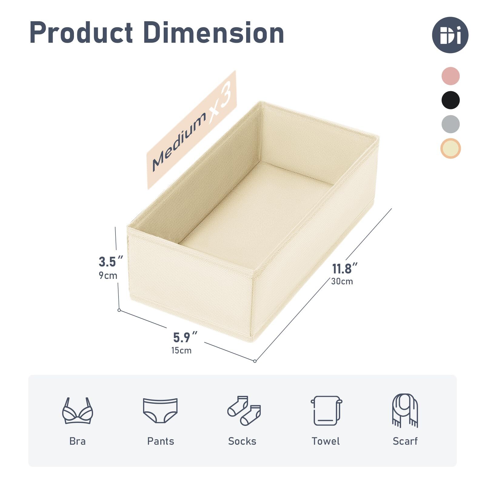 Versatile Use Underwear Drawer Organizer: Suitable for organizing various items such as underwear, bras, socks, ties, clothes, belts, and scarves, meeting diverse household storage needs. Perfect for use inside drawers, wardrobes, or on open storage shelves Tidy Home by Drawer Organizer:With reasonable size storage design 11.8" x 5.9" x 3.5 ", quickly organize cluttered items like bras, socks, and underwear. Maximize drawer space, make items easy to access, and enhance daily efficiency and convenience Flexible Open-Box Design: Meets diverse storage needs with a no-divider design, offering free placement space to accommodate items of various sizes and shapes. Spacious and easy to access, perfect for everyday drawer organizers for clothing and use Side Insert Design Underwear Organizer: The insert-style design eliminates the need for zippers; simply insert the cardboard directly to complete the setup. This avoids potential issues with zippers getting stuck, breaking, or malfunctioning. The side-inserted cardboard design enhances the structural support of the drawer organizer clothes, improving its durability and overall user experience Ideal for Baby Items Baby Dresser Organizer: Our baby drawer organizer is not only suitable for daily household organization but also perfect for storing baby essentials such as bottles, diapers, clothing, small towels, and toys. The medium size nursery drawer organizer with a no-divider design makes it easy to sort and quickly access items, creating a neat and organized baby care space that enhances convenience for new parents Wide Range of Colors and Set Options: Our drawer organizer for clothes available in timeless colors like gray, black, beige, and pink, with 3-piece, 6-piece, and 9-piece sets to cater to your preferences for both color and storage capacity