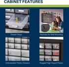 From the manufacturer Product Description The Akro-Mils 10144 44-Drawer Plastic Drawer Storage Cabinet with Drawers is a great solution for all your storage needs. This heavy-duty cabinet is made from rugged, high-impact polystyrene plastic and features 44 plastic drawers offering ample storage space for all your small parts and tools. Large drawer inside dimensions: 4-7/8-Inch x 4-1/4-Inch x 2-Inch; small drawer inside dimensions: 5-1/4-Inch x 1-11/16-Inch x 1-1/2-Inch. Whether you're looking to organize your garage, workshop, classroom, or home, this storage cabinet has you covered. Garage owners and businesses will love the versatility of this cabinet, with the plastic storage drawers perfect for use as a hardware organizer, screw organizer box, or for battery storage. Keep your nails and other small parts accessible with ease. Teachers can use the cabinet for classroom storage, as a teacher toolbox, art storage, craft storage box, for scrapbook supplies, and more. This plastic storage cabinet is also perfect for home storage and organization. Use it as a lego organizer, craft organizer, or bead storage. It's even great for makeup storage and organization or for medicine and first aid supplies. And with the ability to stack cabinets securely or wall-mount them using keyhole slots, along with finger-grip drawer pulls and rear stop tabs to prevent contents from spilling, this cabinet has everything you need to keep your items safe and organized. Cabinets have 8 small crosswise dividers and 4 large length dividers included. Included dividers are molded into the back of the cabinet (remove with scissors).